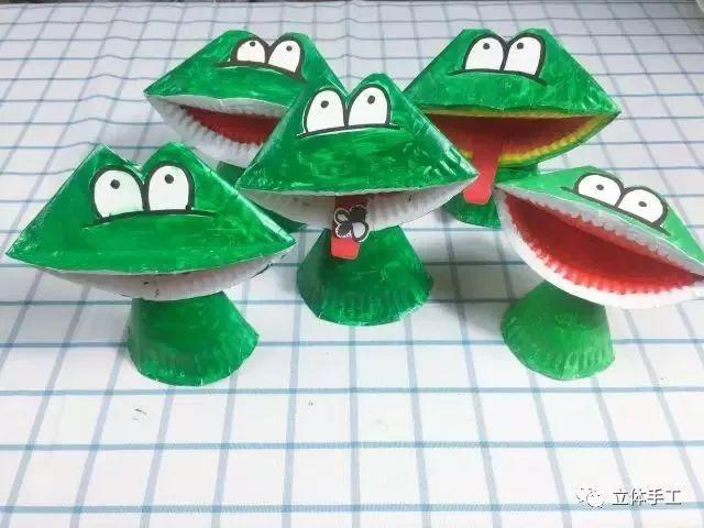 把三角锥钉在嘴巴背面,小青蛙造型就完成了。