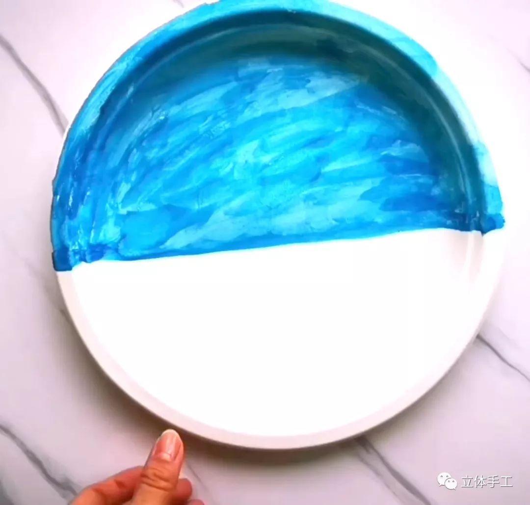 【准备材料】一个半白色纸盘、剪刀,尺子、订书机、笔、颜料。