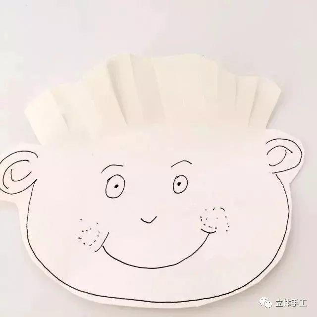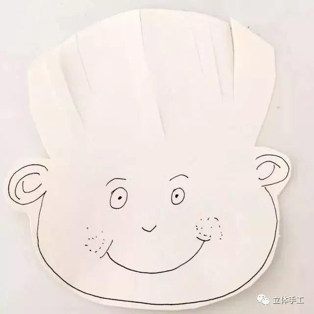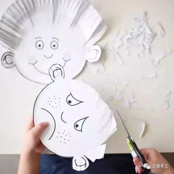 【制作步骤】在纸盘上画出人脸的轮廓,然后用剪刀剪出头发的形状。