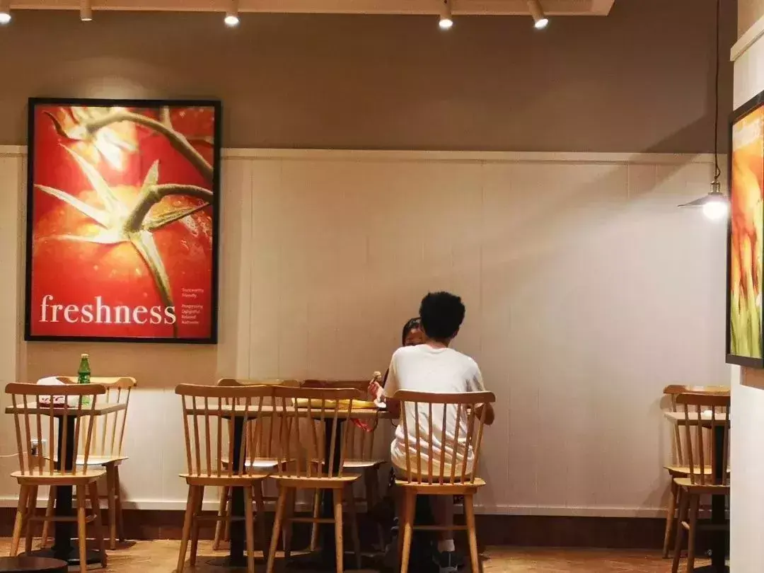 深夜,这里还有很多温馨的画面在上演。这对母子一进来就引起了我们的注意。儿子手上拿着购物袋,径直走去点餐,妈妈就坐在位置上等待。深夜,儿子就是妈妈的守护神。
