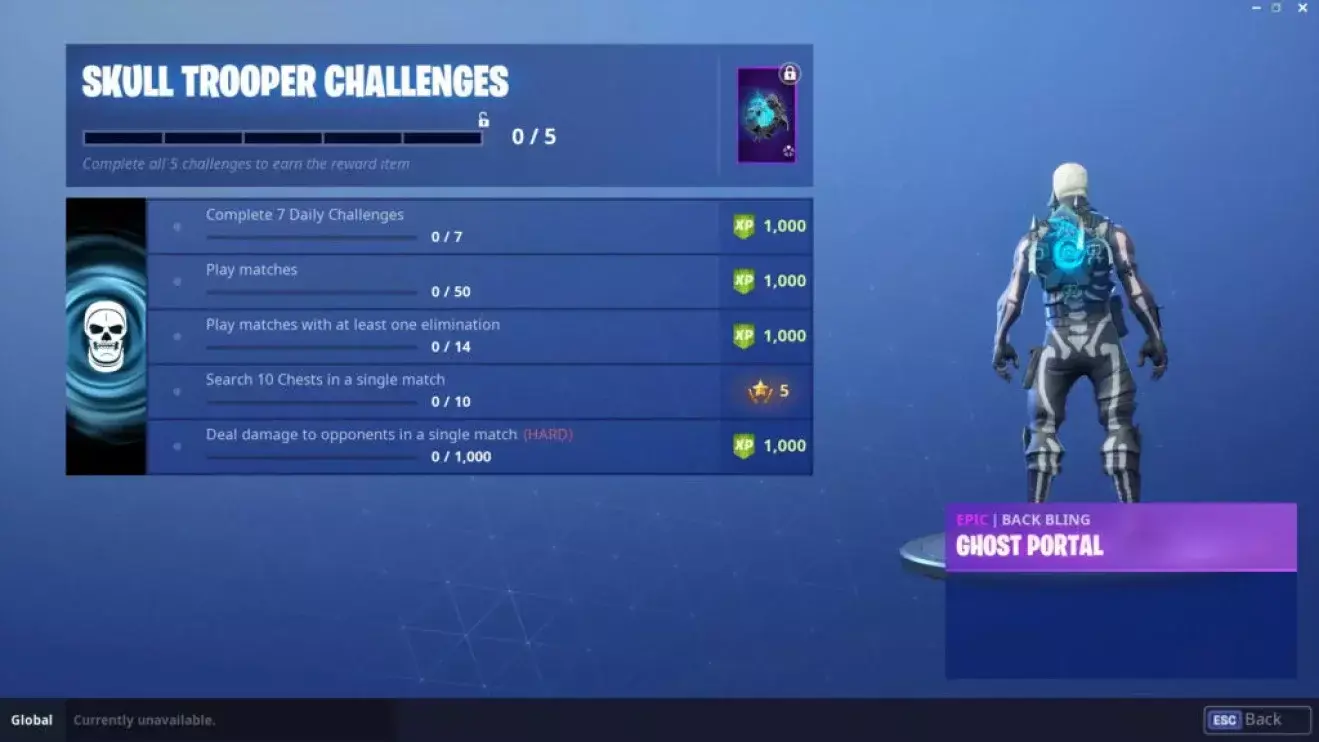 背饰在购买皮肤后(男骷髅)还需要完成挑战解锁: