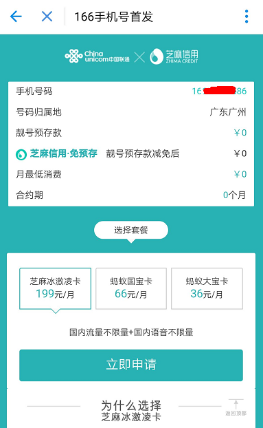 即可看到“166手机号首发” 进入就可以到办理页面!