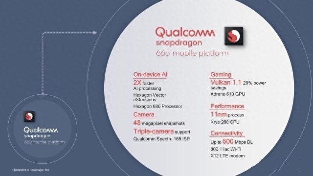 不过,处理器的真实性能并不能仅仅通过跑分来判断。据了解,骁龙665最大的亮点是其采用了11nm LPP工艺以及AI能力方面的提升,高通官方宣称骁龙665的AI性能相较于骁龙660提升了两倍之多。另外还着重升级了GPU、DSP以及ISP,能够为用户带来更强的性能和更好的使用体验。