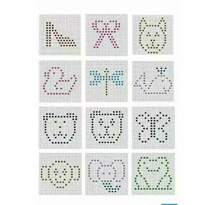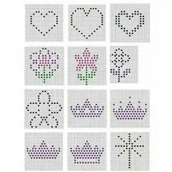 简单可爱的小像素图,字母、数字、小卡通图案网格图