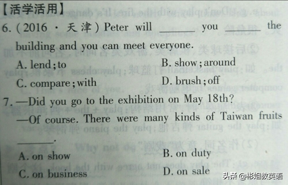 (2)用作动词,意为“给……看,出示;表明”。常见用法有:show sb. sth. =show sth. to sb 把某物给某人;show sb. around 带领某人参观