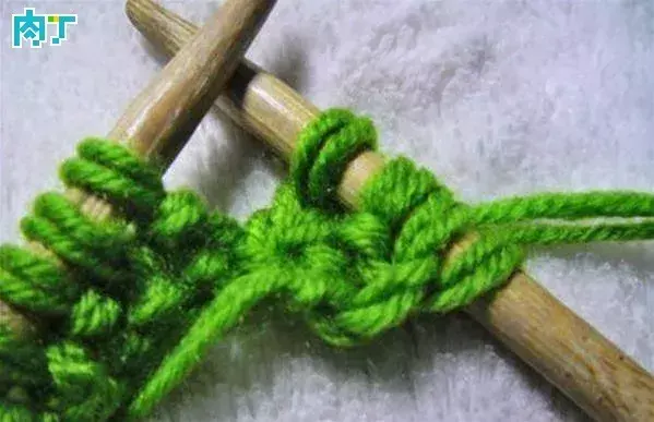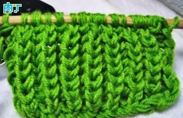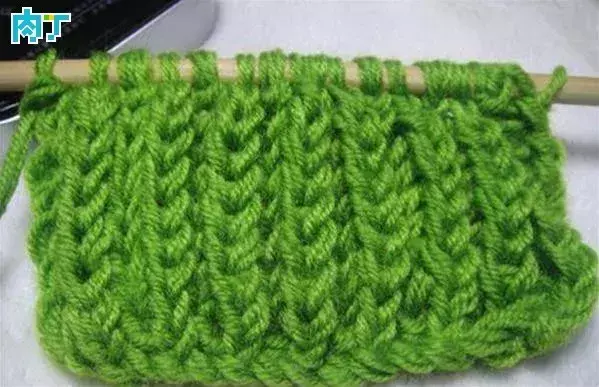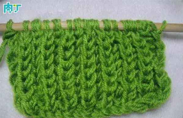 第三排:接下来织法就与刚才的织法一致,绕线,反挑一针不织,然后2针并1针织下针