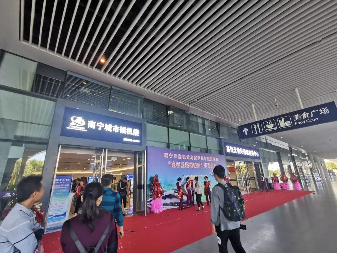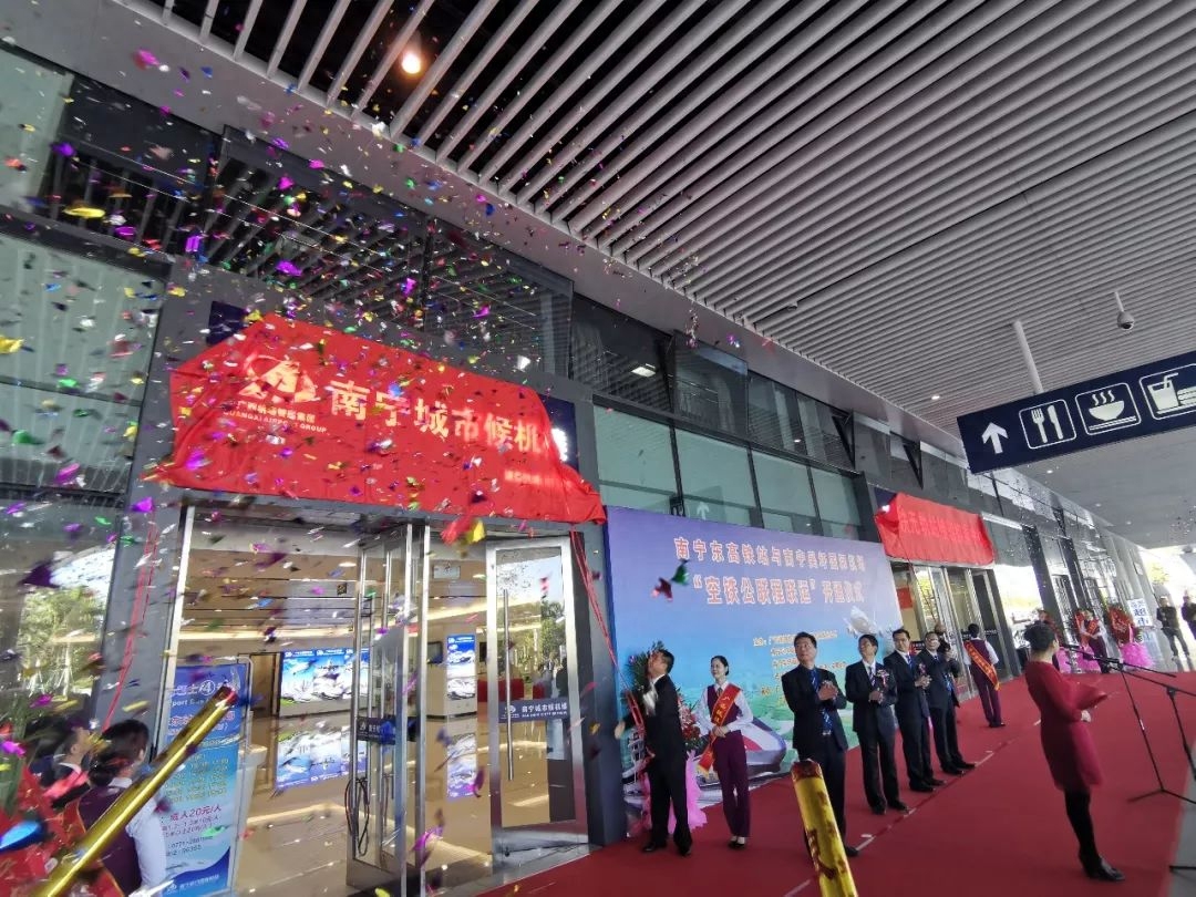 广西铁路旅游传媒集团公司与南宁吴圩机场达成空铁公联运合作共识,在南宁东站设立城市候机楼,高铁站端设立机场城际大巴候机区,南宁吴圩机场端设立集铁路购票、咨询、宣传等多位一体的旅客候车综合区,实现空铁无缝接驳换乘。