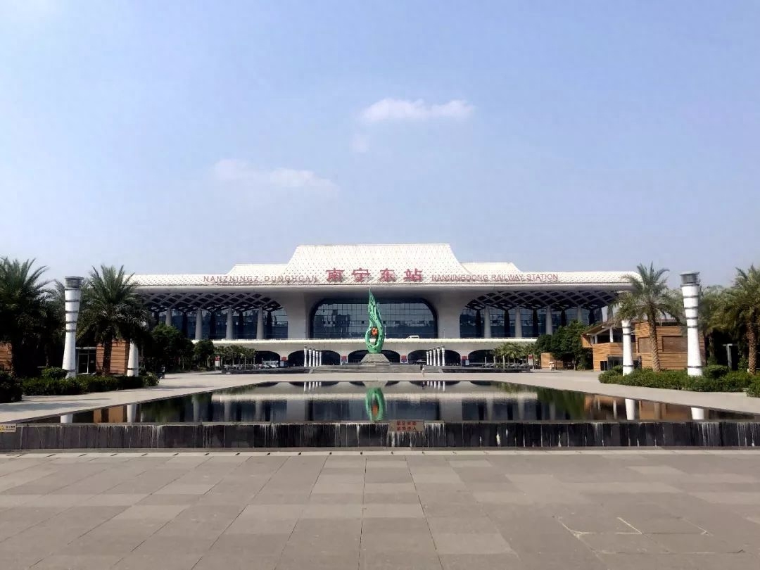 南宁东火车站是广西建设体量最大、旅客运输能力最大、现代化程度最高的铁路客运枢纽站,还是集城市轨道、市域短途公路客运、市区公交、出租车、私家车等诸多交通方式为一体的特大型城市综合交通枢纽,已成为广西首府南宁市地标性建筑。