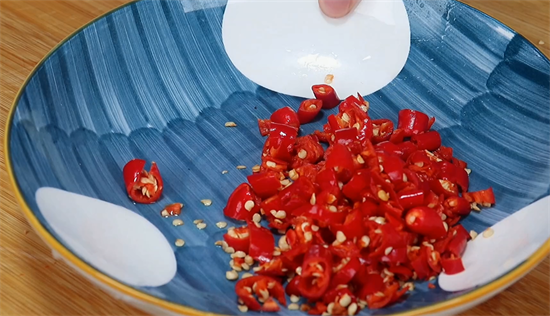 4、接下来再把准备好的小米辣切碎,切完之后同样是放到盘中,再把准备好的大蒜拍碎,然后切成末,切完末之后再来切一下生姜,生姜也要切成末,生姜和大蒜全部切完之后放到一个盘中备用。