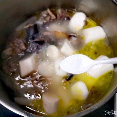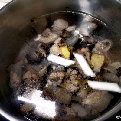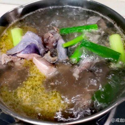 3、重新接好吃大半锅水,放入做法鸡肉,葱白段,姜片2片,花椒,大火有营养烧开后转中小火炖1个小时。