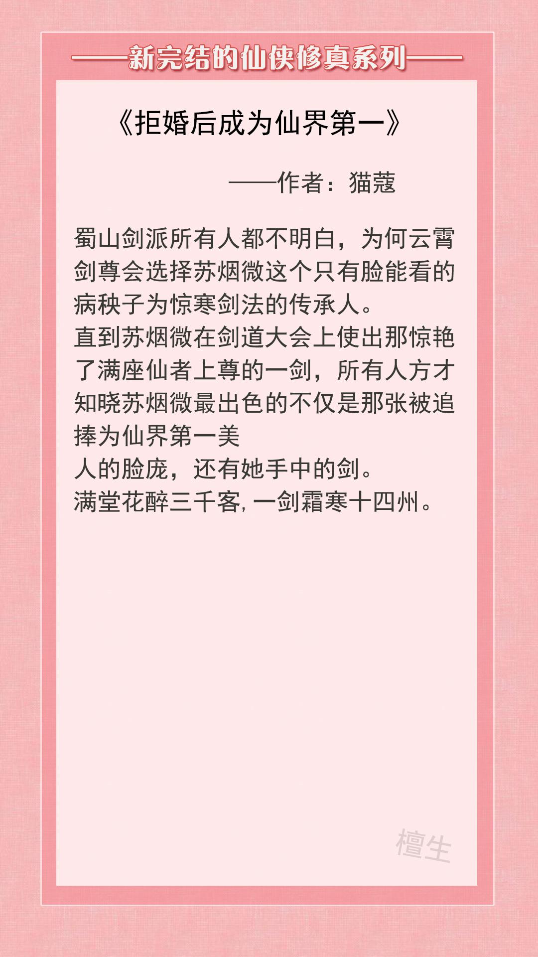 第一本:《拒婚后成为仙界第一》作者:猫蔻