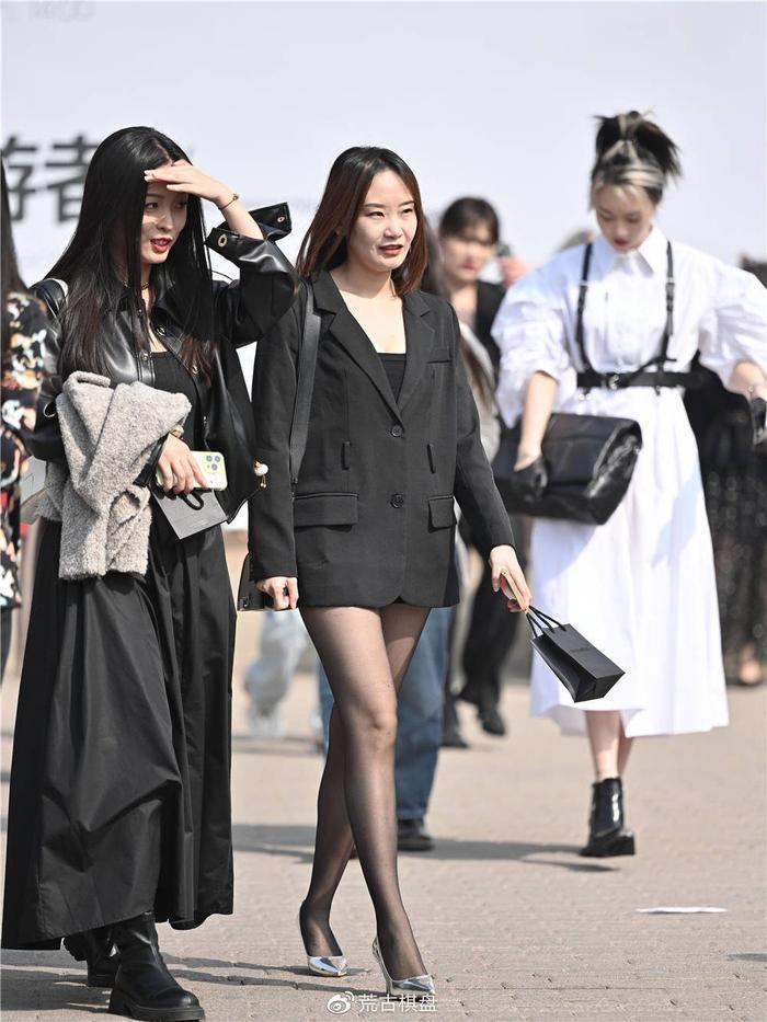 黑色丝袜搭配高跟鞋,春季的经典穿搭,也搭配出个性时尚的效果