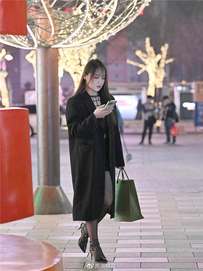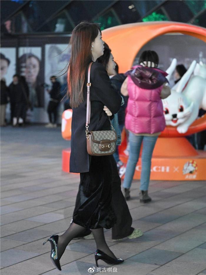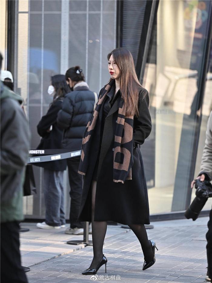 转眼间到了春天,出门的人多了起来,特别是周末,很多人出来,可以看到人山人海的,高跟鞋搭配黑色丝袜,也是很精致的搭配风格,这位美女选择黑色丝袜,是稍微厚实一些的款式,色彩深一些,也显得肤色很好,搭配黑色的漆皮尖头细跟鞋,很舒服的搭配,也显得身材很好,8厘米的高度,增高显瘦,也搭配出简约大气的效果,一件黑色的呢子大衣,扣子没有系,偶尔可以展示一下内搭,拼接色的围巾,起到了点缀效果。