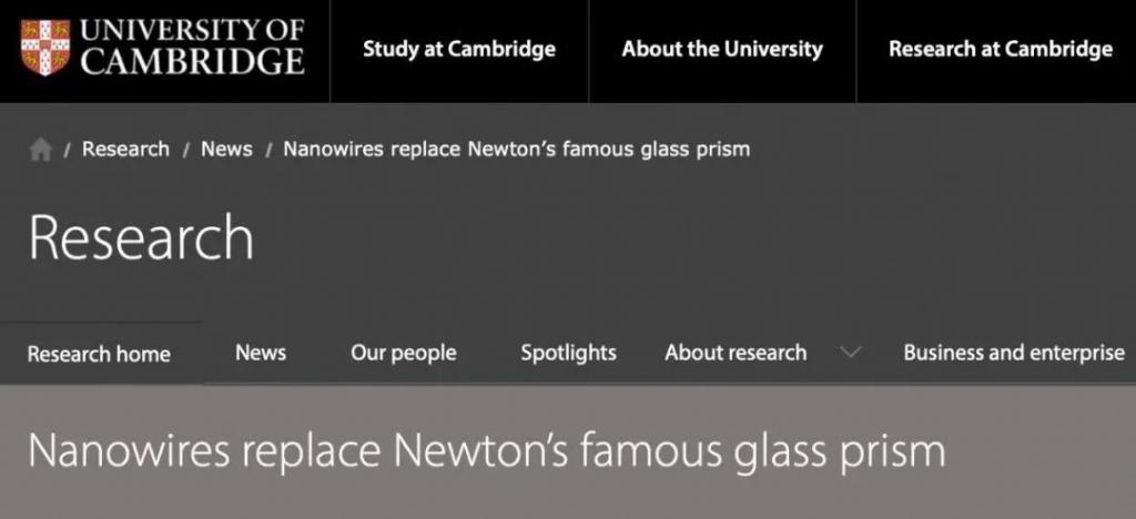 牛顿的母校剑桥大学主动刊发新闻说,这项研究超越了牛顿光学实验极限。