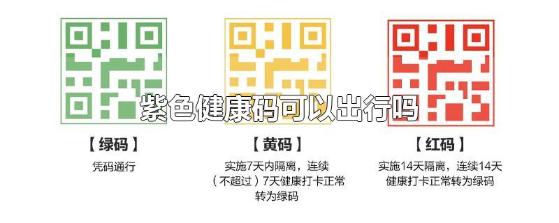 紫色健康码不可以出行。紫色健康码代表危险人群,包括确诊患者、检测阳性患者、疑似病例及其密切接触者,以及未过14天观察期的出院病人。另外绿码可以直接通行,红码集中隔离14天,黄码隔离7天以内。