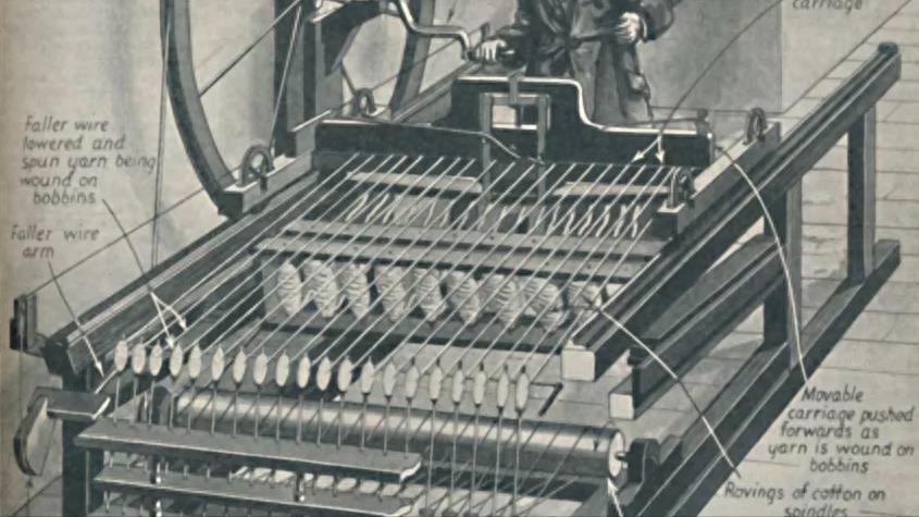 珍妮纺纱机在棉花工业中很普遍,直到 1810 年左右被纺纱骡子取代。