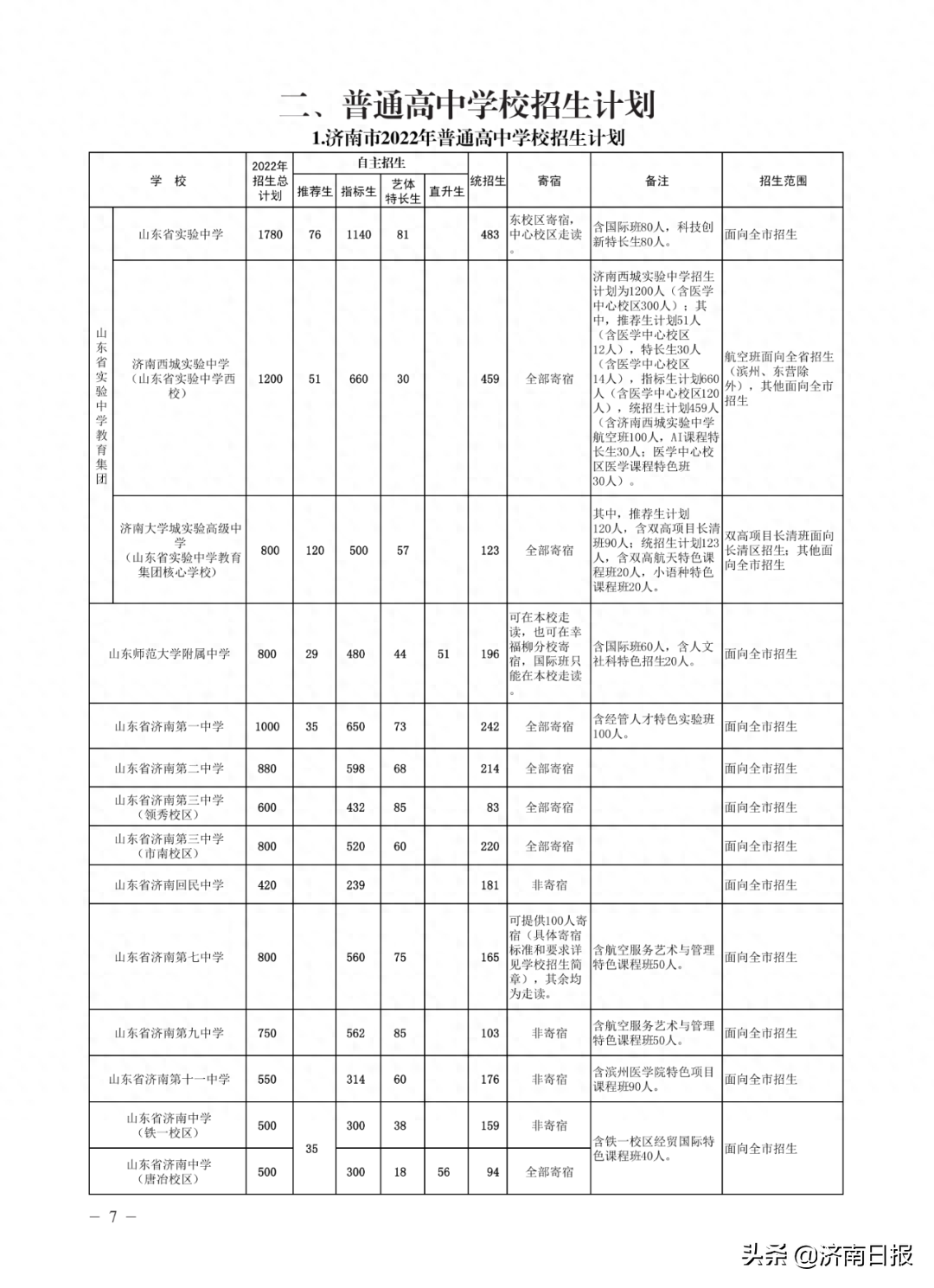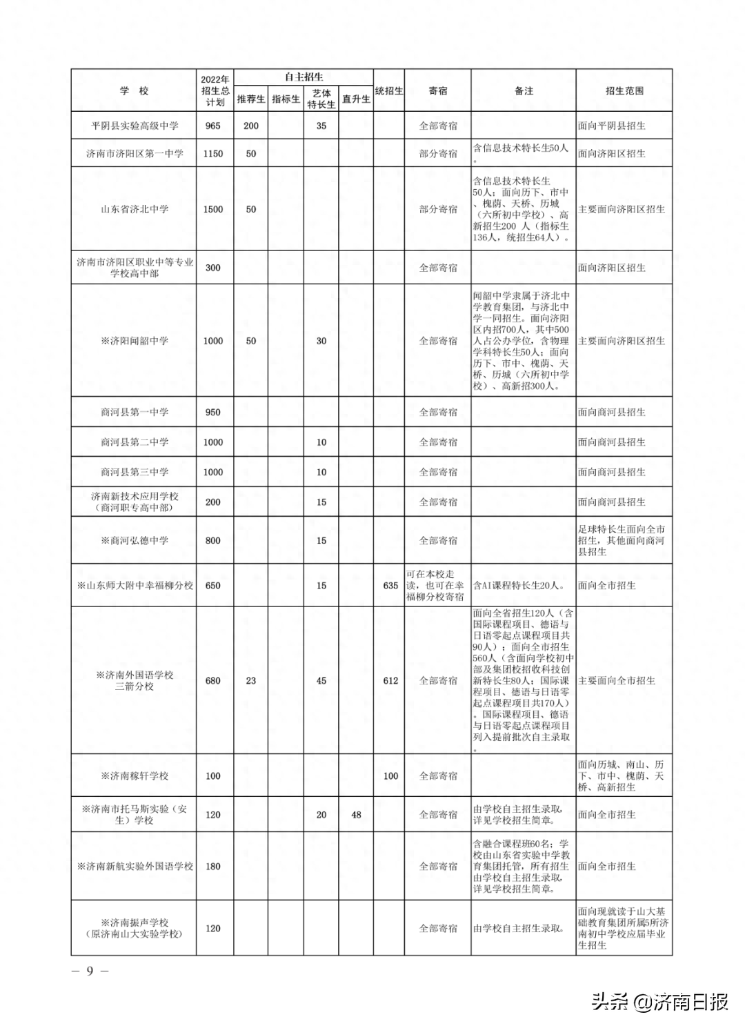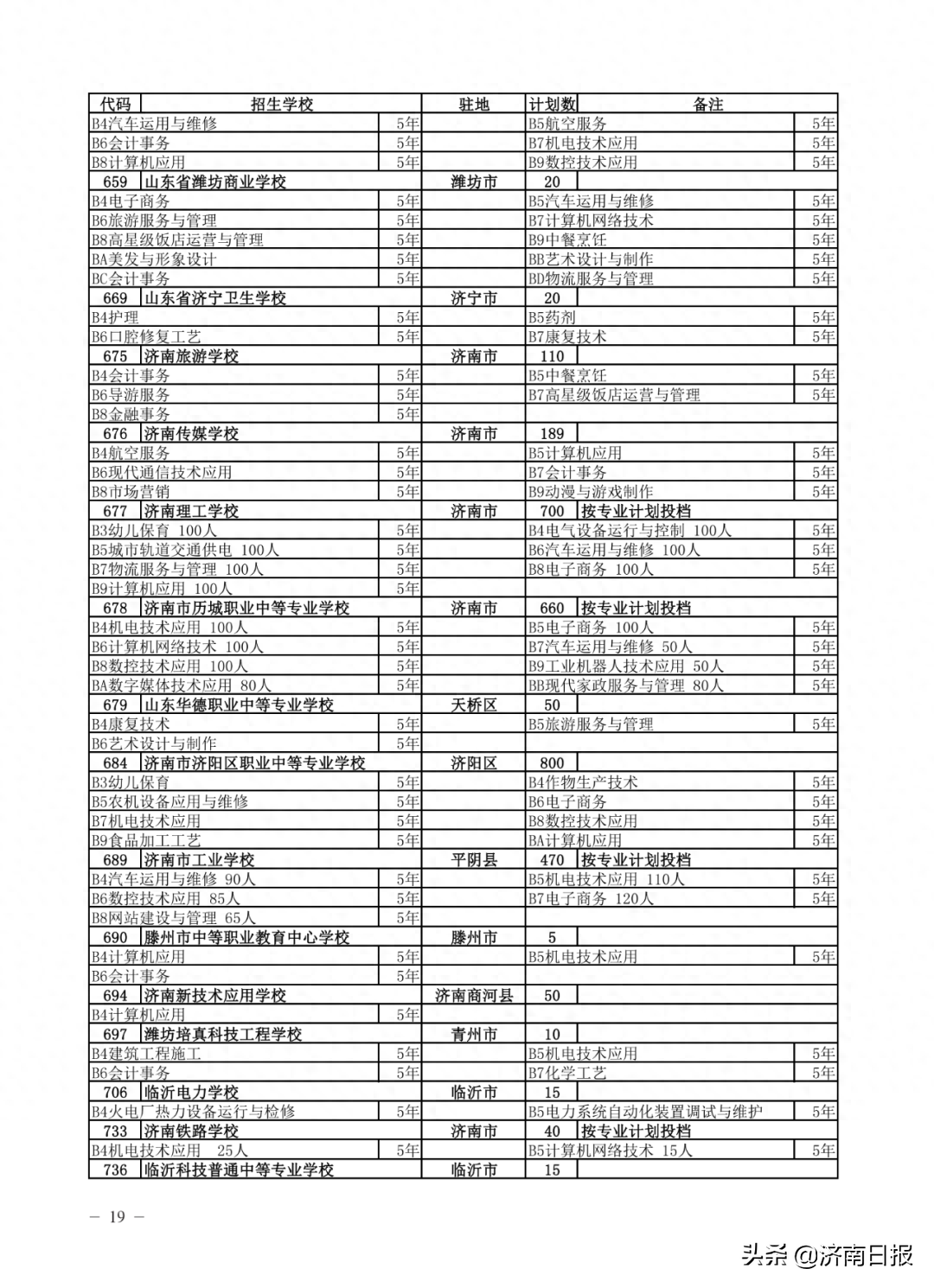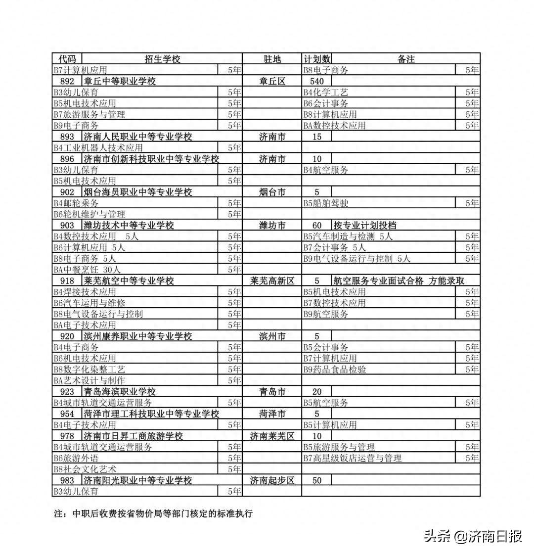 收藏!济南各类学校招生计划、学校代码及专业代码、指标生分配方案来了