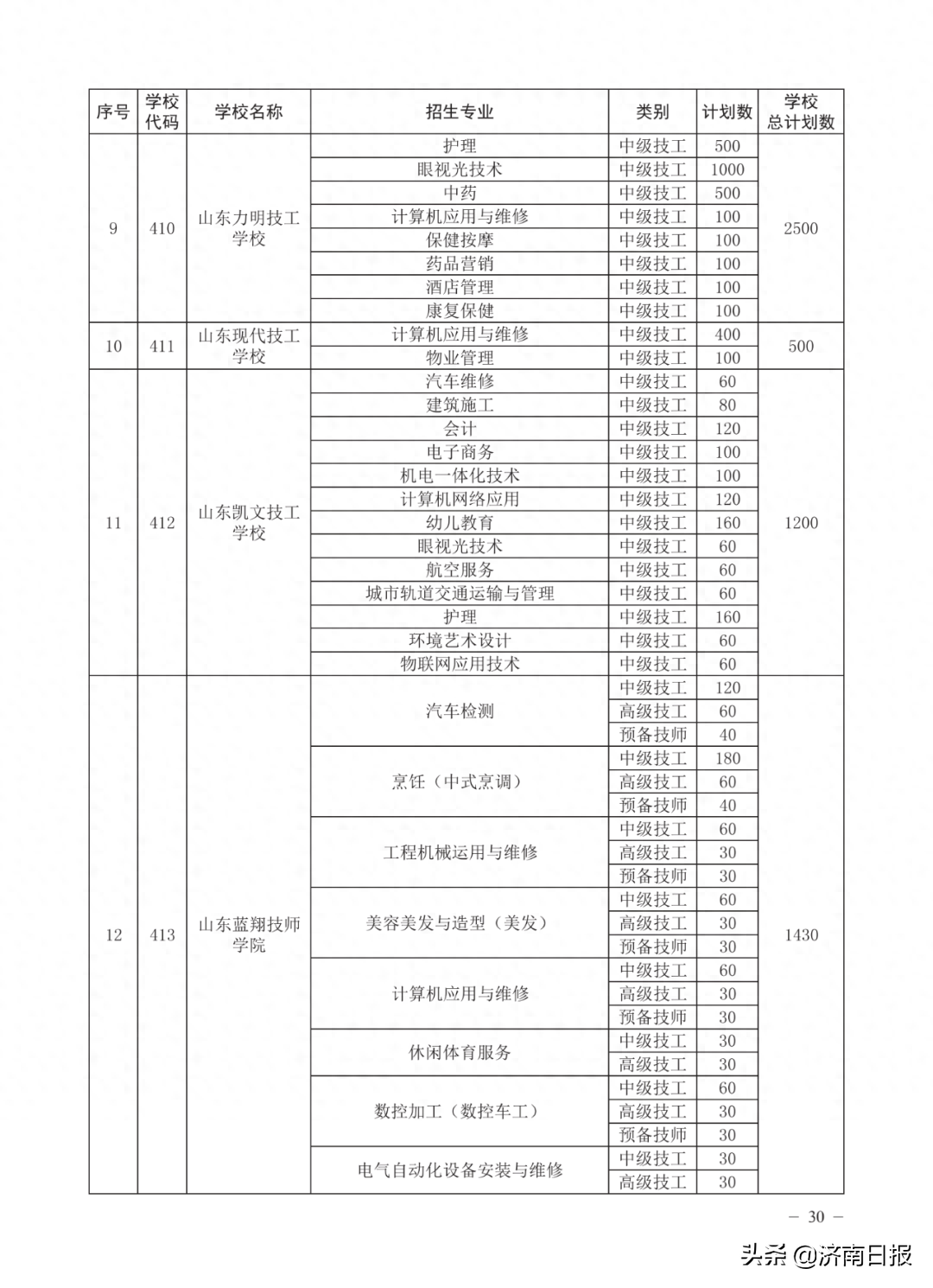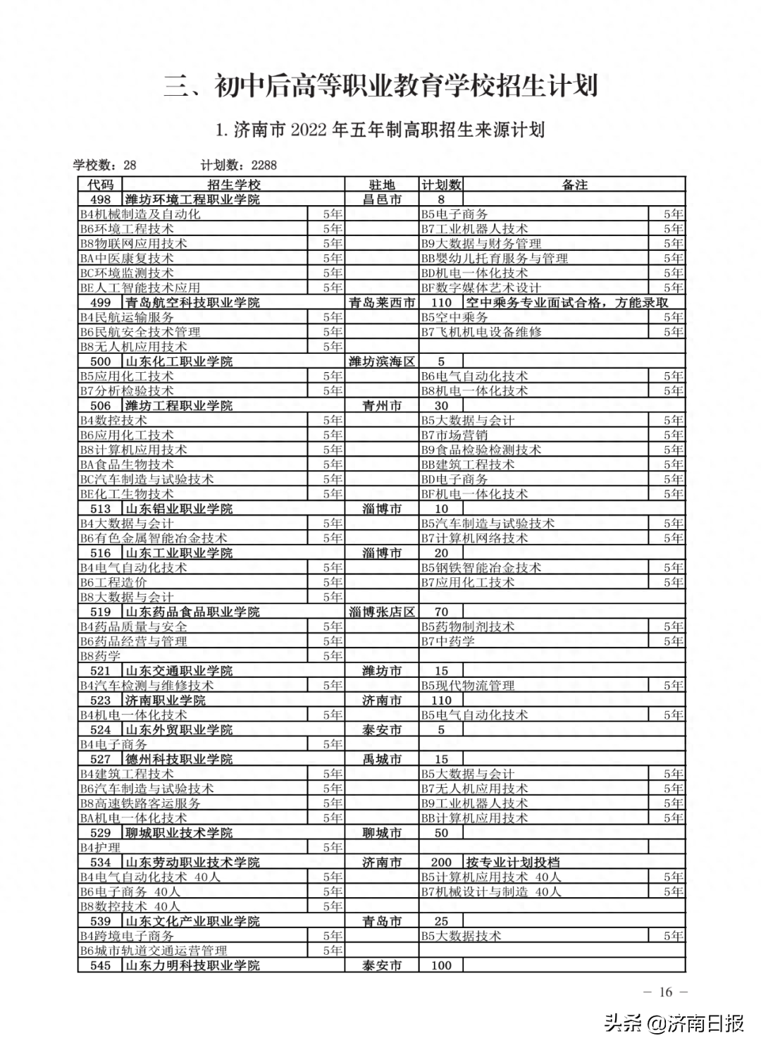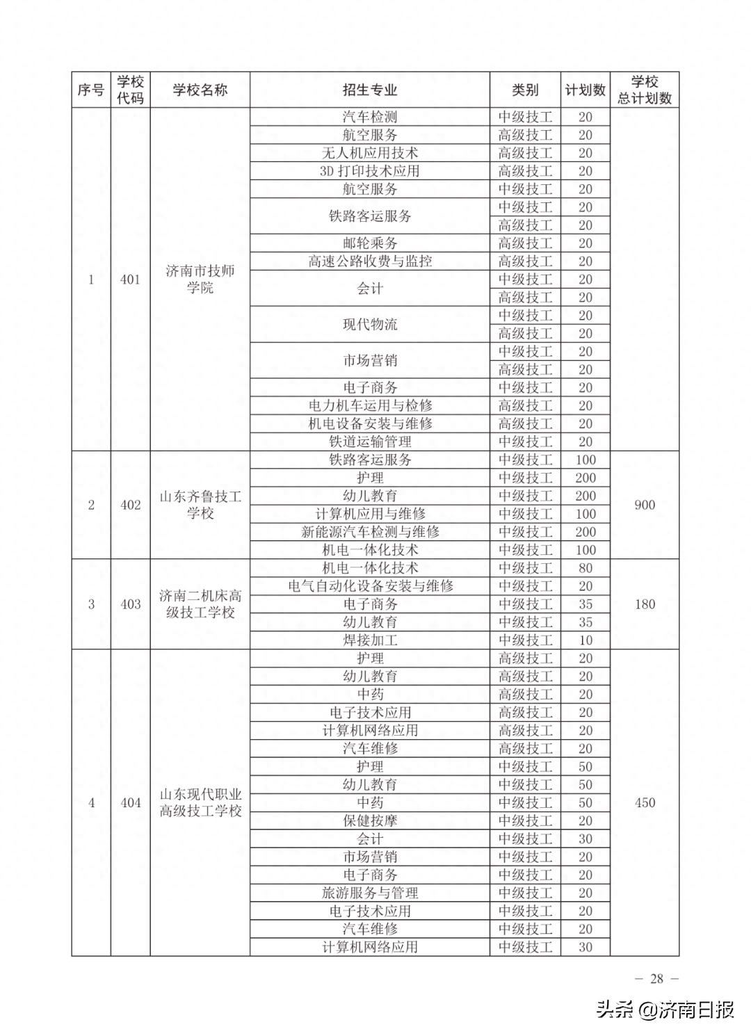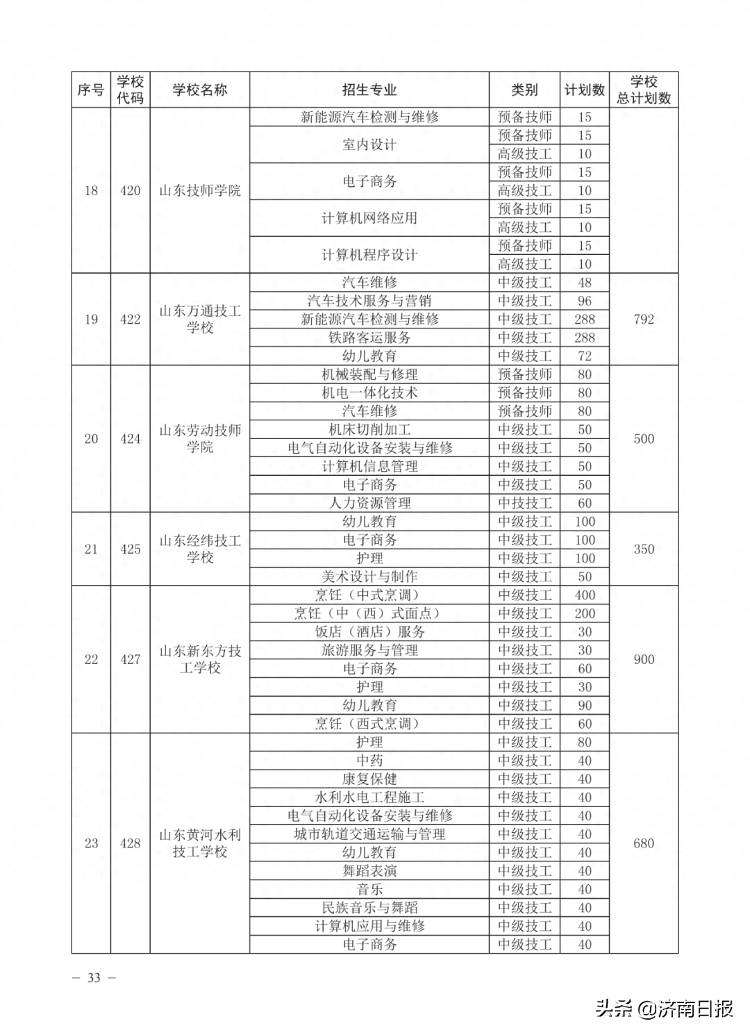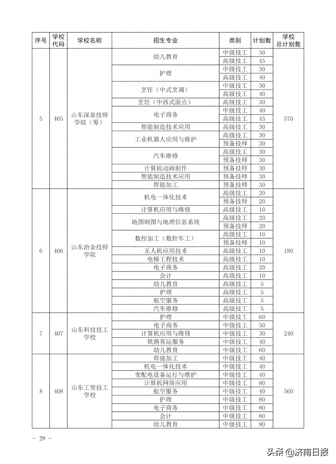 收藏!济南各类学校招生计划、学校代码及专业代码、指标生分配方案来了