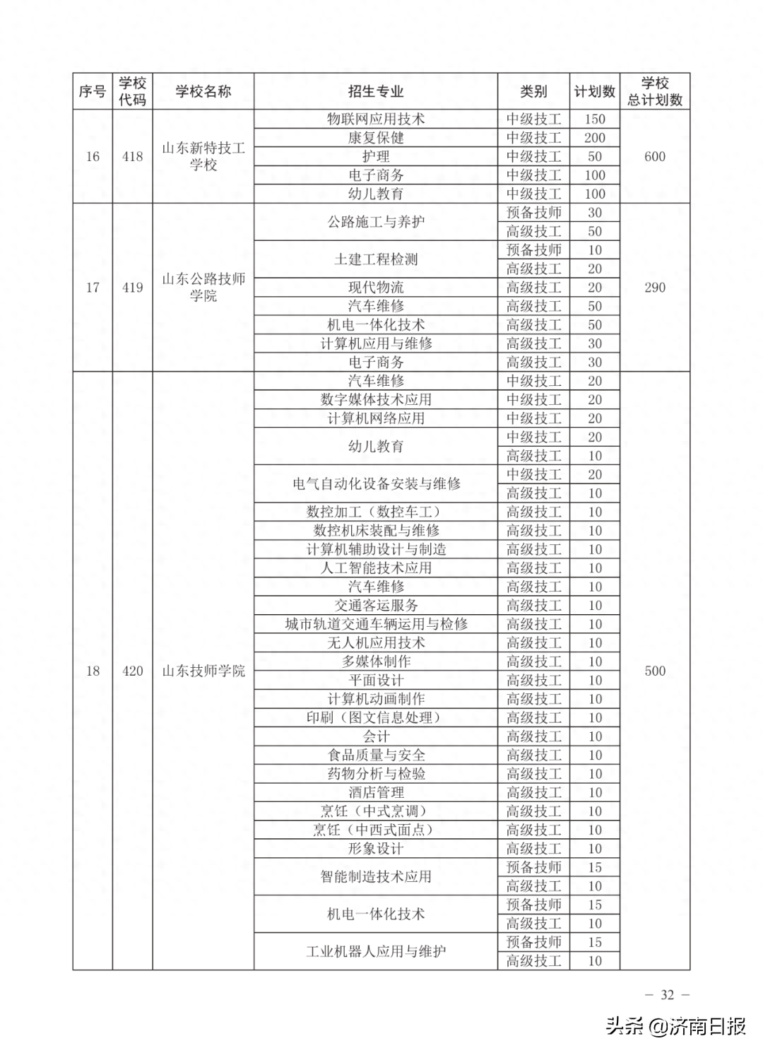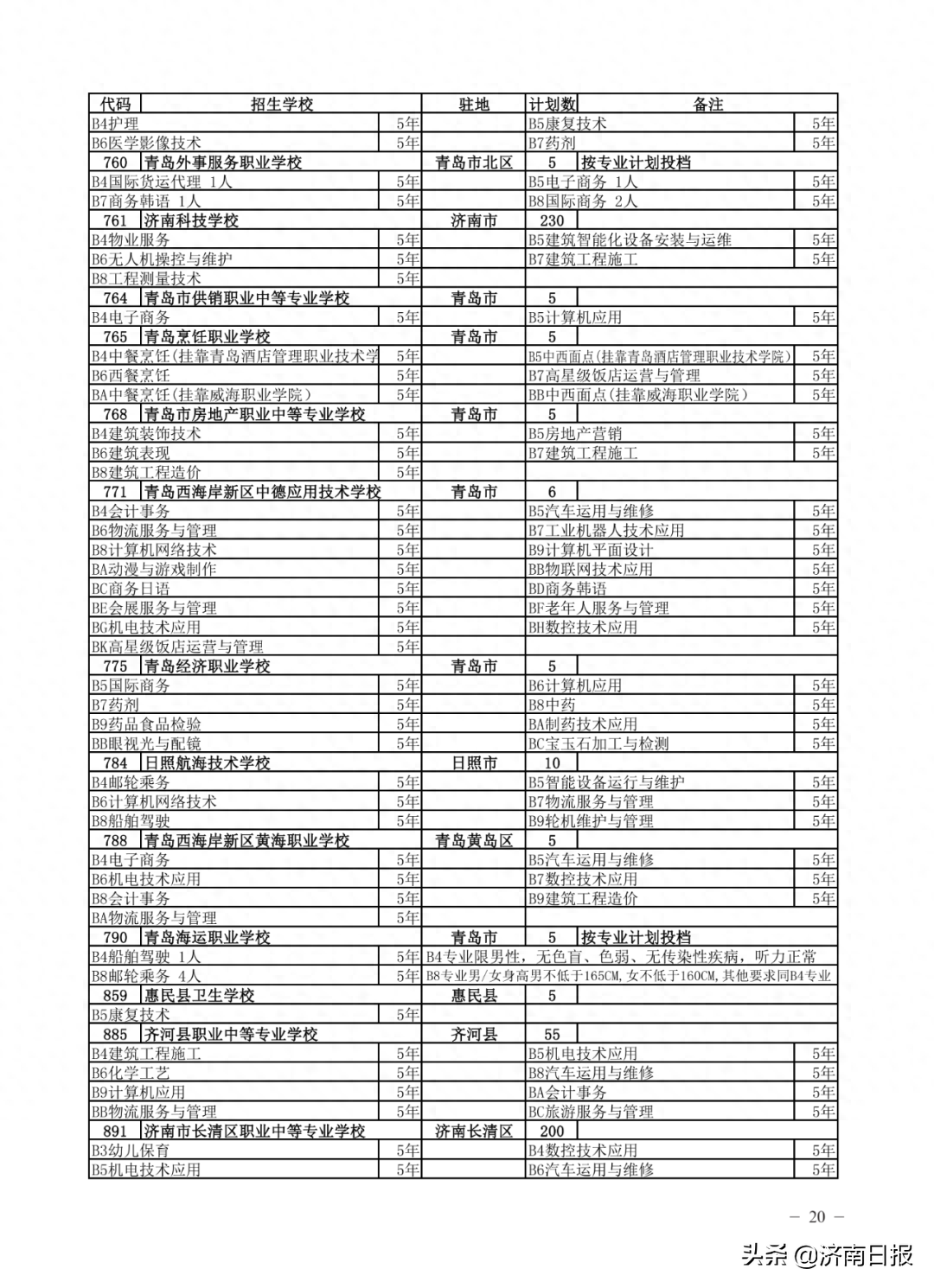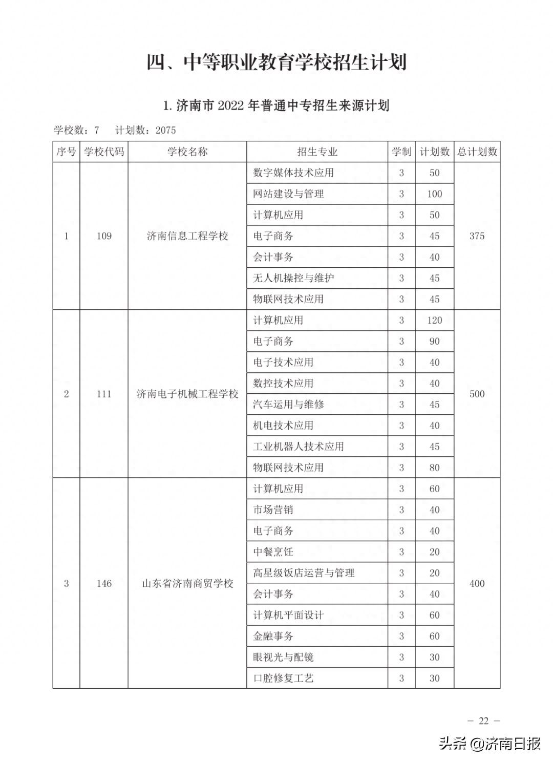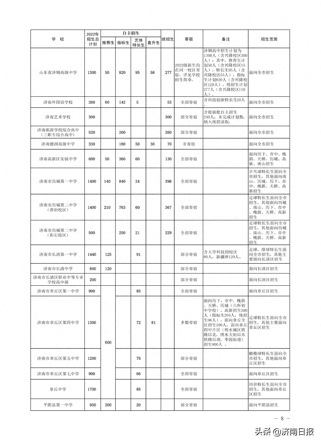 收藏!济南各类学校招生计划、学校代码及专业代码、指标生分配方案来了