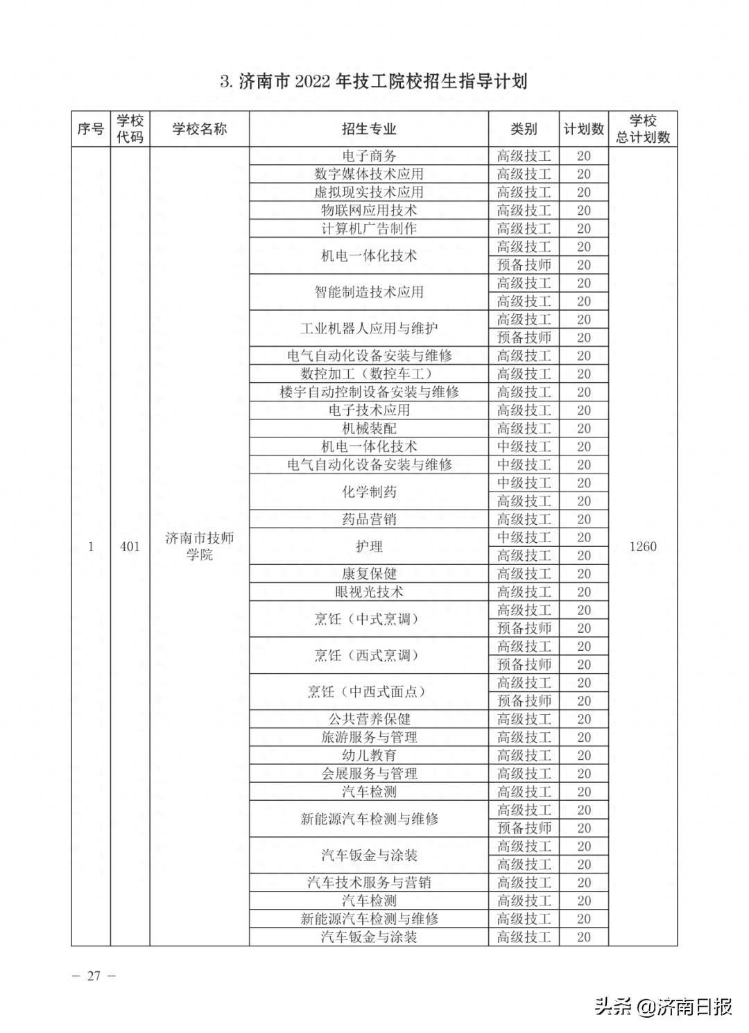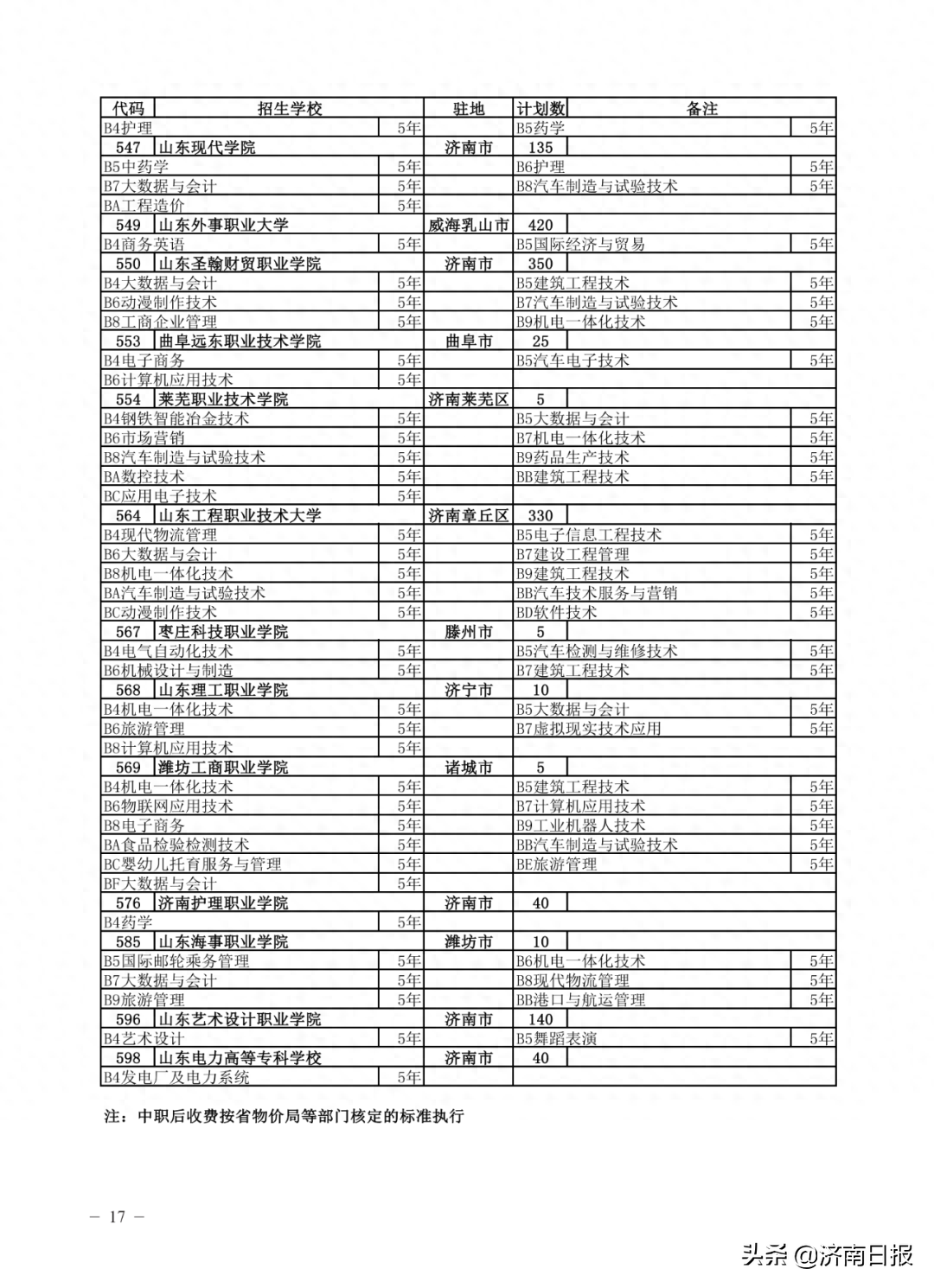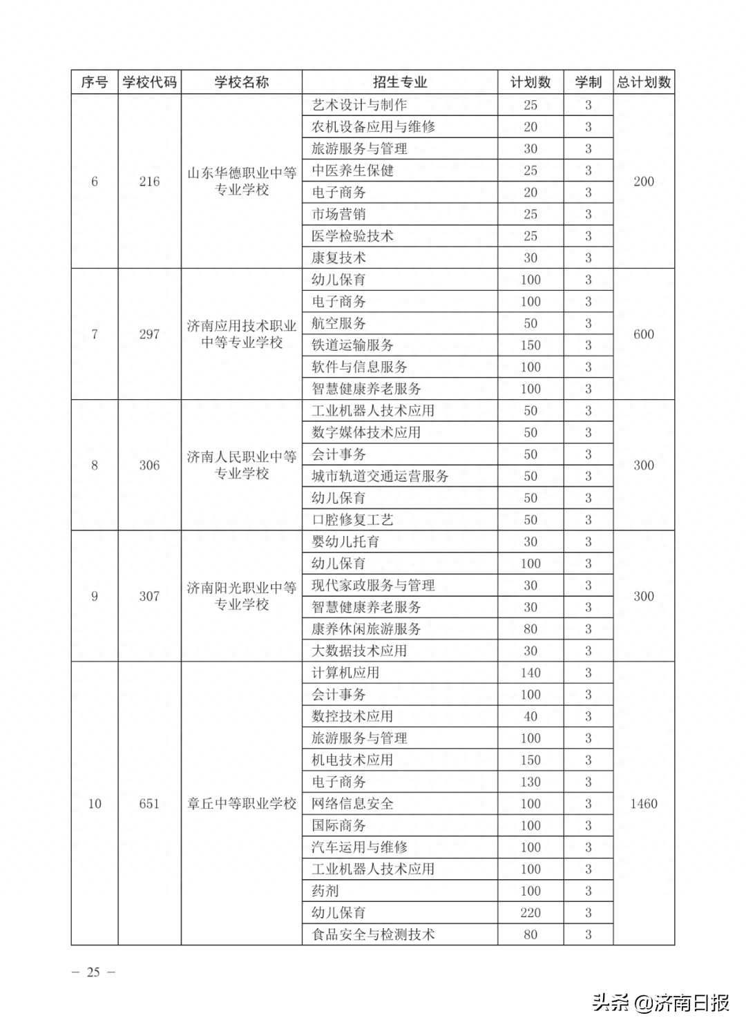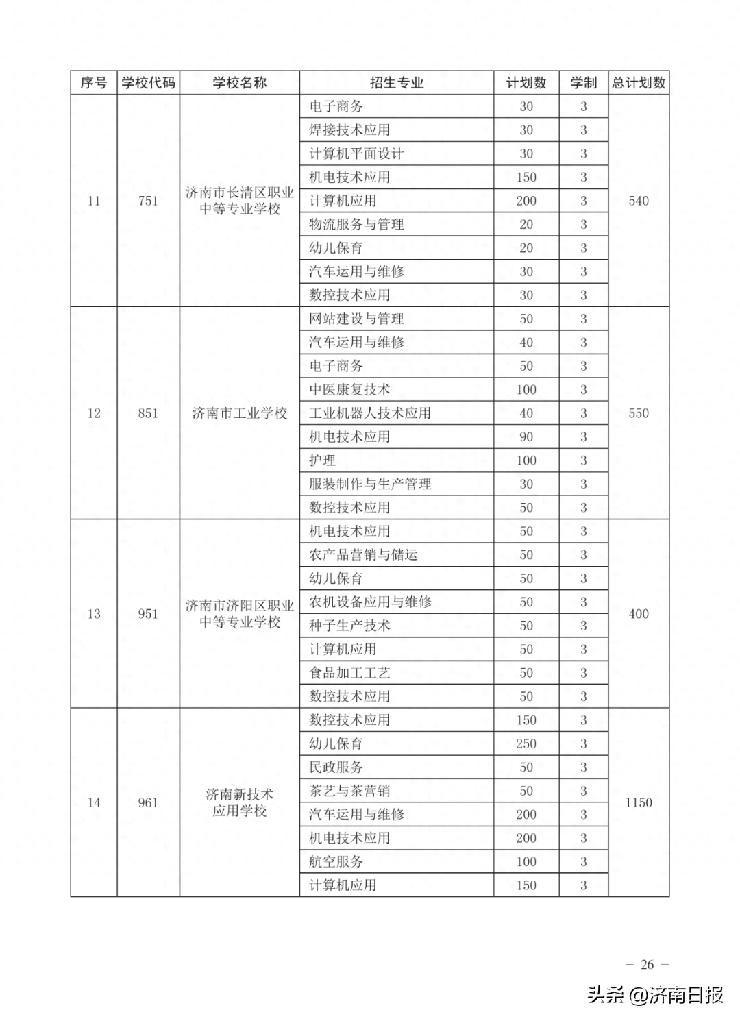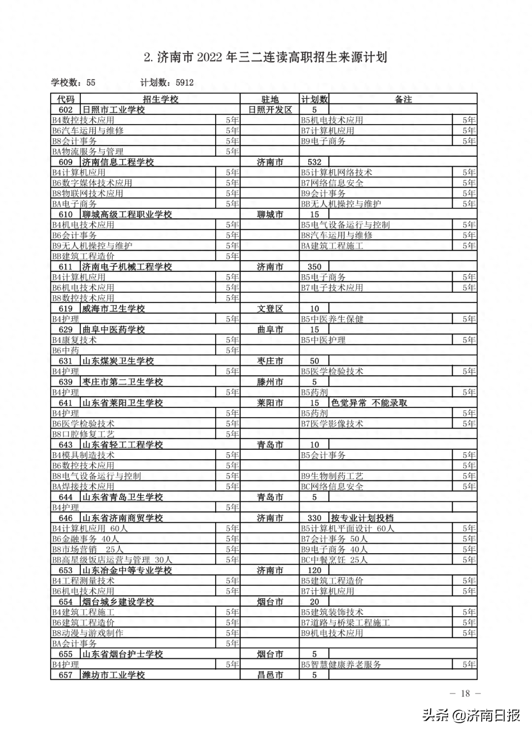 收藏!济南各类学校招生计划、学校代码及专业代码、指标生分配方案来了