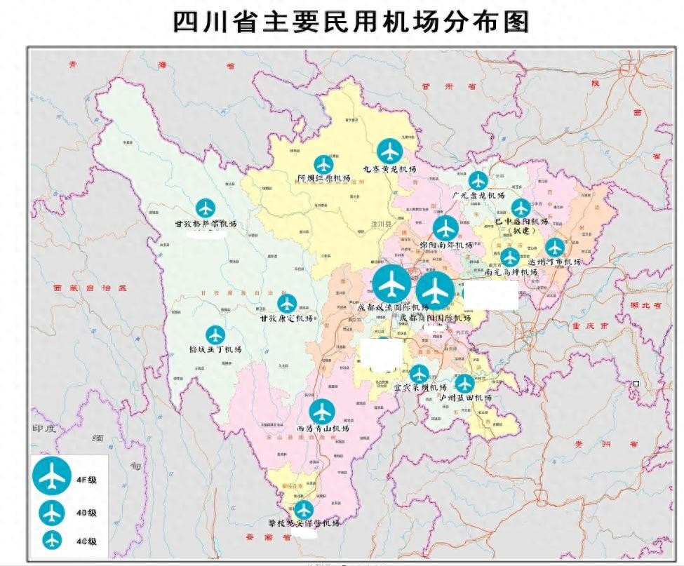成都天府国际机场:双跑道,4F成都双流国际机场:双跑道,4F绵阳南郊机场:4D九寨黄龙机场:4D西昌青山机场:4D宜宾五粮液机场:4C泸州云龙机场:4C南充高坪机场:4C达州金垭机场:4C巴中恩阳机场:4C广元盘龙机场:4C阿坝红原机场:4C甘孜康定机场:4C甘孜格萨尔机场:4C稻城亚丁机场:4C攀枝花保安营机场:4C