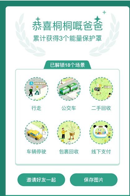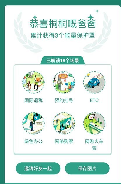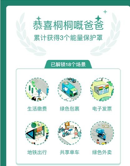 18个低碳场景,全部找出来,就可以获得3个能量保护罩了。这个能量保护罩是在蚂蚁森林当中保护自己的能量不被好友偷取的。