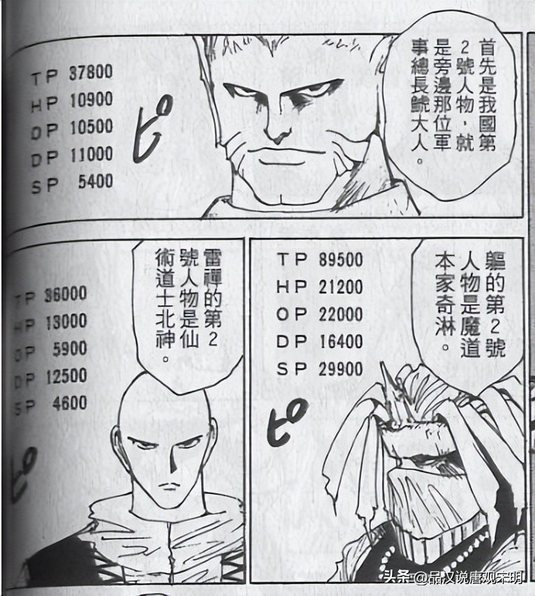 而其他两位,雷禅的二把手北神妖力值才36000,不过从剧情里来看他多半是个辅助选手,所以也多少说得过去(而且这货是会隐藏实力的,因此原作里才说他也是S级)。