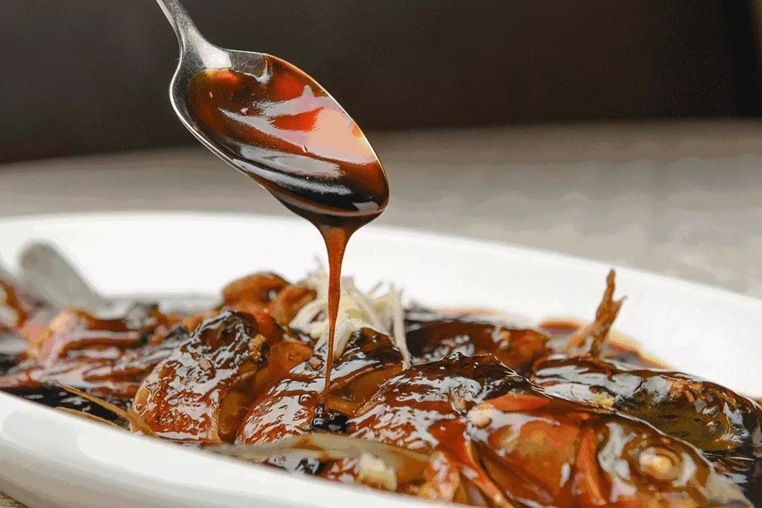 简单来说就是把蟹肉“酿”在橙子里烹煮,除了蟹肉外,里面还有荸荠、鸡蛋、肥肉等。蟹肉的肥美和橙子的清新完美地结合在了一起。