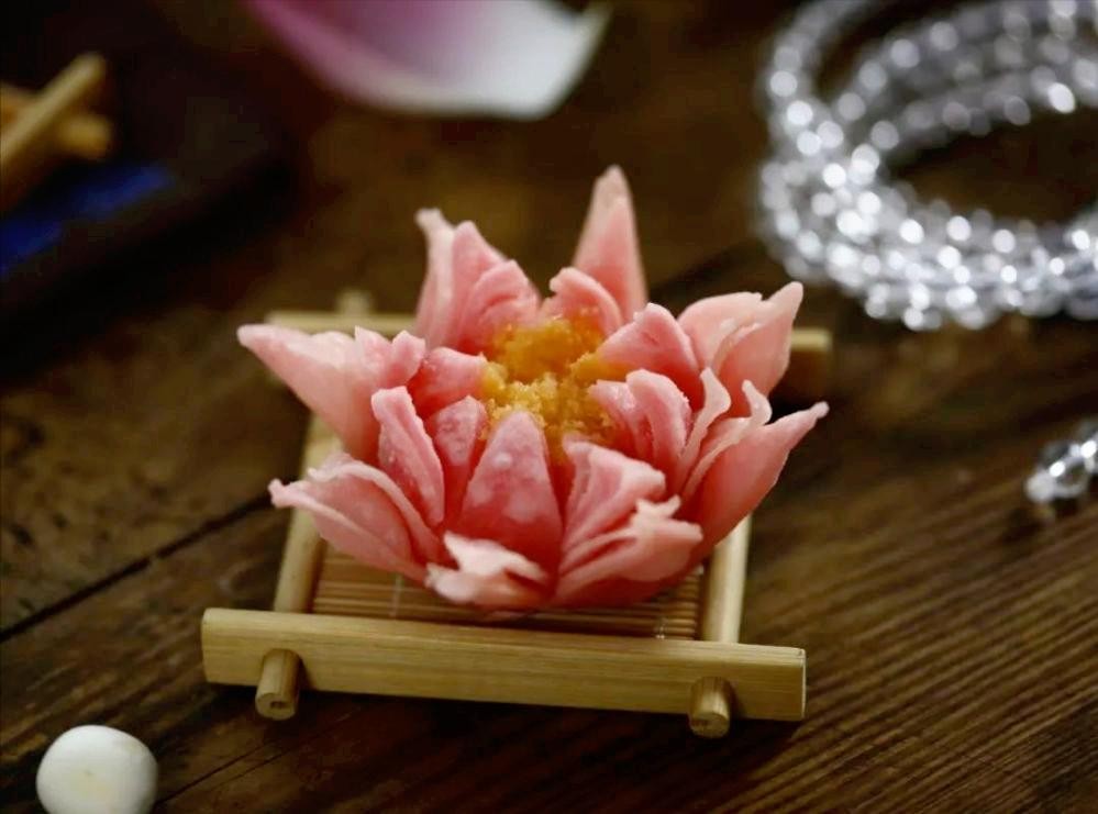 荷花酥是一种制作成荷花形的精致糕点,在视觉上就是一种美妙的享受。