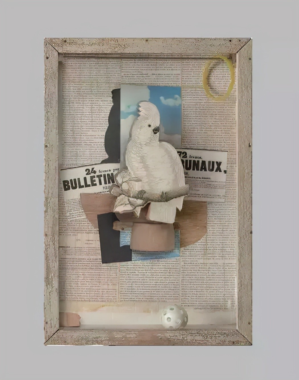拼贴艺术也扩展到了三维层面,人们将其称为“集合艺术” (Assemblage)。材料可以是立体物,也可以是平面上的堆积物,不局限在二维的平面上,而是将二维和三维元素混合组装。