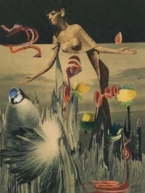 随着一战的结束,达达主义的热潮逐渐退去,超现实主义取而代之。在超现实主义画家的手中,拼贴画的材料更富有想象力,比如达利的作品《内战的预兆》就用到了煮熟的四季豆作为绘画的材料。