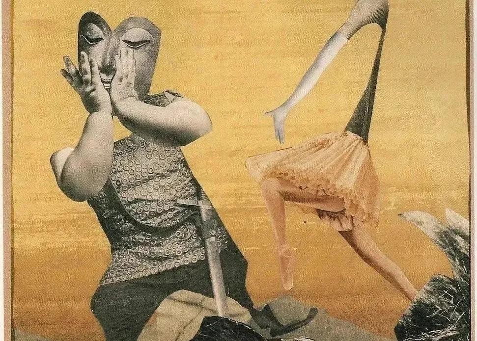 一战之后,世界秩序发生崩坏,人们对现有的事物开始产生怀疑,而拼贴艺术正是将粗暴、不谐的元素巧妙并置,并从语境中断章取义,横加扭曲,因此成为了艺术家们用来表现动荡社会的绝佳手段。