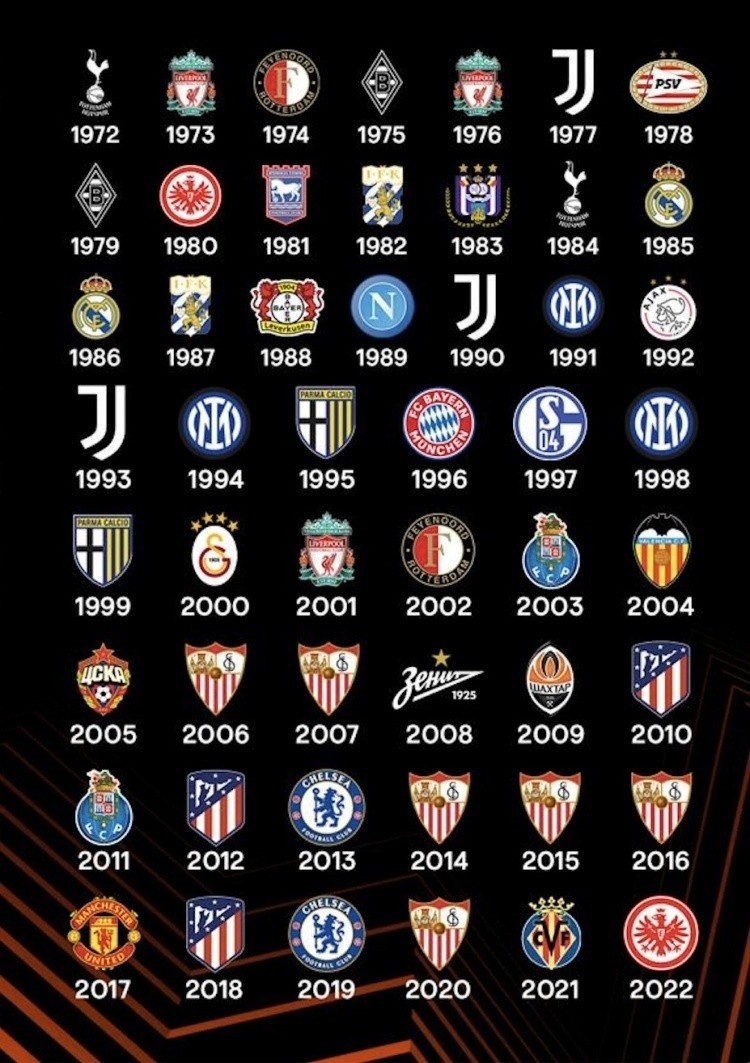 历届欧联杯(联盟杯)冠军,看各大联赛谁才是欧联王者