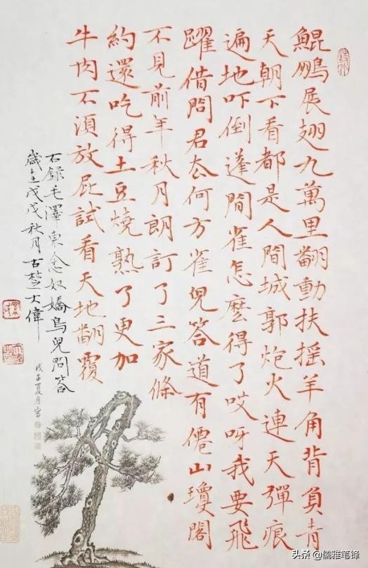 鲲鹏展翅,九万里,翻动扶摇羊角。 背负青天朝下看,都是人间城郭。 炮火连天,弹痕遍地,吓倒蓬间雀。 怎么得了,哎呀我要飞跃。 借问君去何方,雀儿答道:有仙山琼阁。 不见前年秋月朗,订了三家条约。 还有吃的,土豆烧熟了,再加牛肉。 不须放屁!试看天地翻覆。
