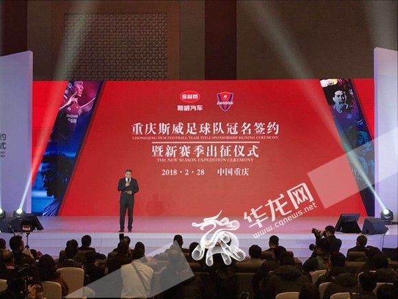 华龙网2月28日10时14分讯(记者 苏桢淇)今(28)日,重庆当代力帆足球俱乐部在悦来国际会议中心举行出征仪式。同时,俱乐部正式向外界宣布,SWM斯威汽车成为俱乐部球队的冠名赞助商,球队将以“重庆当代力帆足球俱乐部斯威队”(简称“重庆斯威”)的名称征战2018赛季中超联赛。