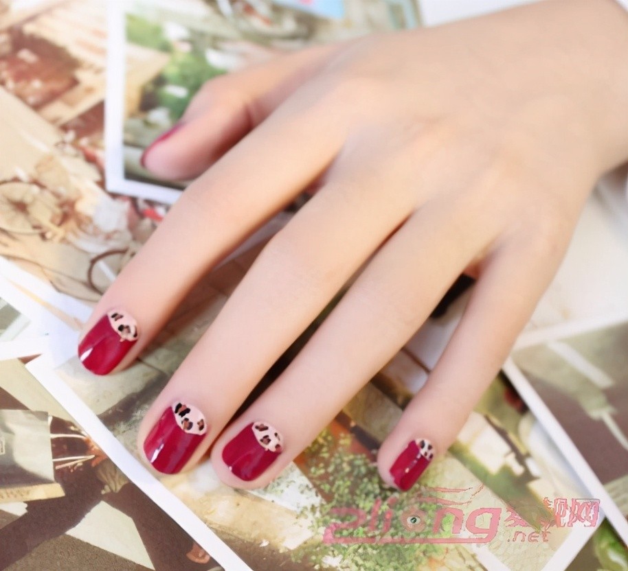 玫瑰红色+豹纹,这样的组合超时尚的,个性又狂野,性感时尚,这样的一款美甲看上去不会太过火,又不失时尚感!2024最潮!