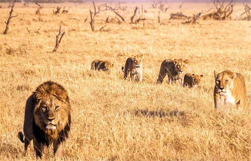 社会结构:狮子是唯一生活在社交群体中的大型猫科动物,这种群体被称为“狮群”。一个狮群通常由几只雌狮、它们的幼崽和几只雄狮组成。狮群合作捕猎和抚养幼崽。