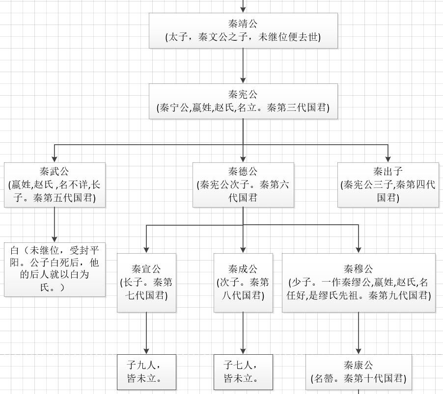 部分秦朝赢姓君王及其子孙脉系关系图谱1