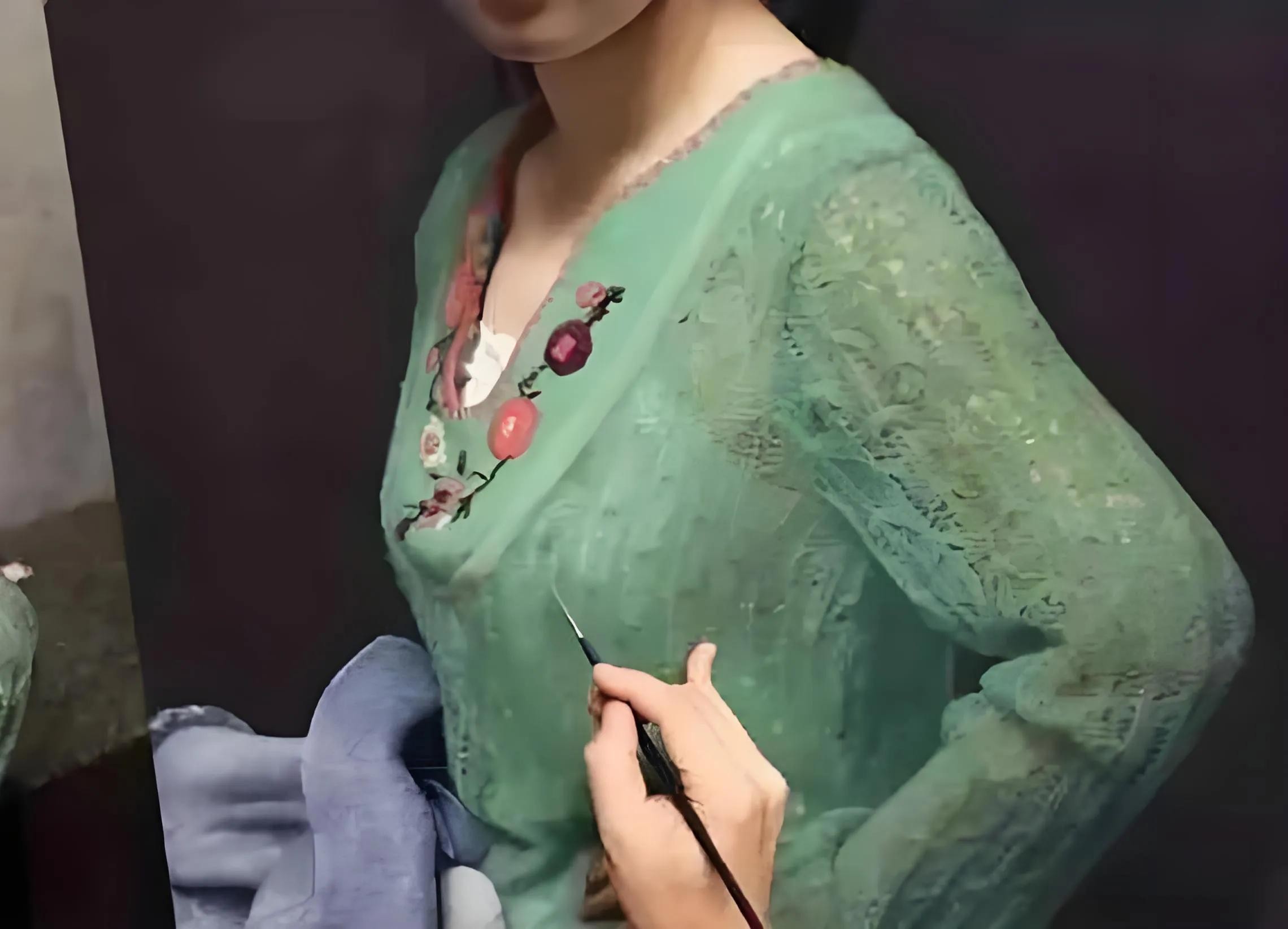 代表作之一,《肖像之相——小姜》,对人物的刻画极为细腻,如毛衣的绒毛、肌肤的质感、头发的光泽等都表现得十分逼真,仿佛真人一般。2019年该做作品,拍出7015万,刷新写实派作品拍卖纪录。